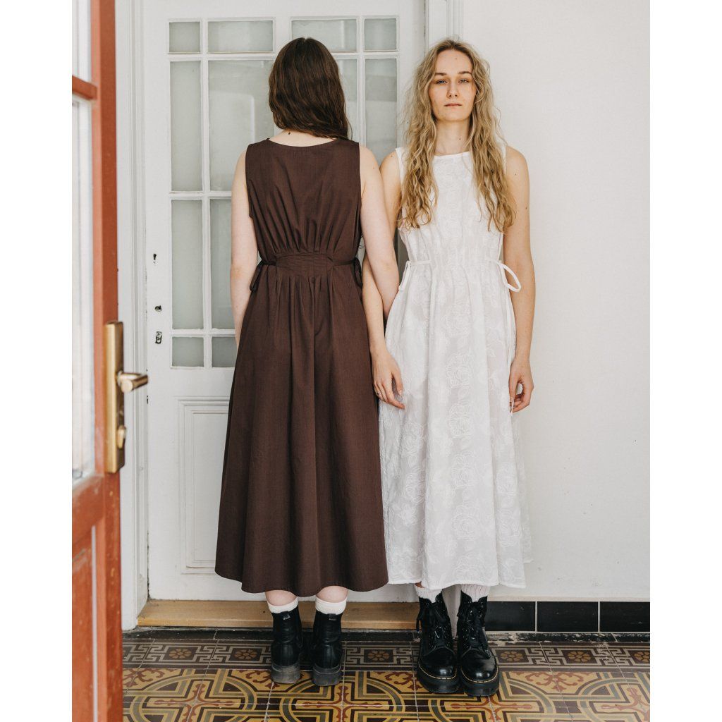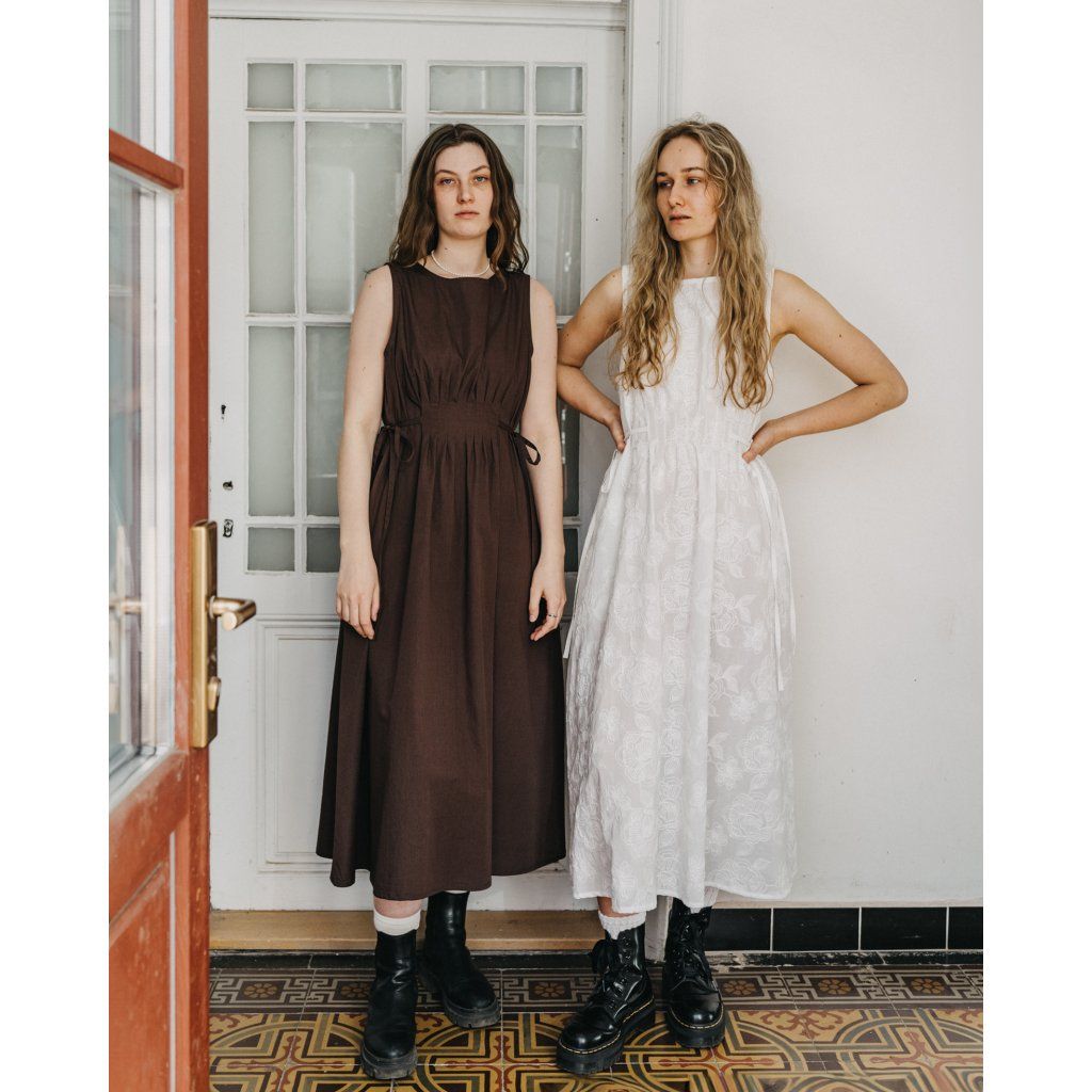 Modelka Kája měří 179 cm a má na sobě velikost M-L (hnědá), modelka Bety měří 179 cm a má na sobě velikost S-M (bílá).
